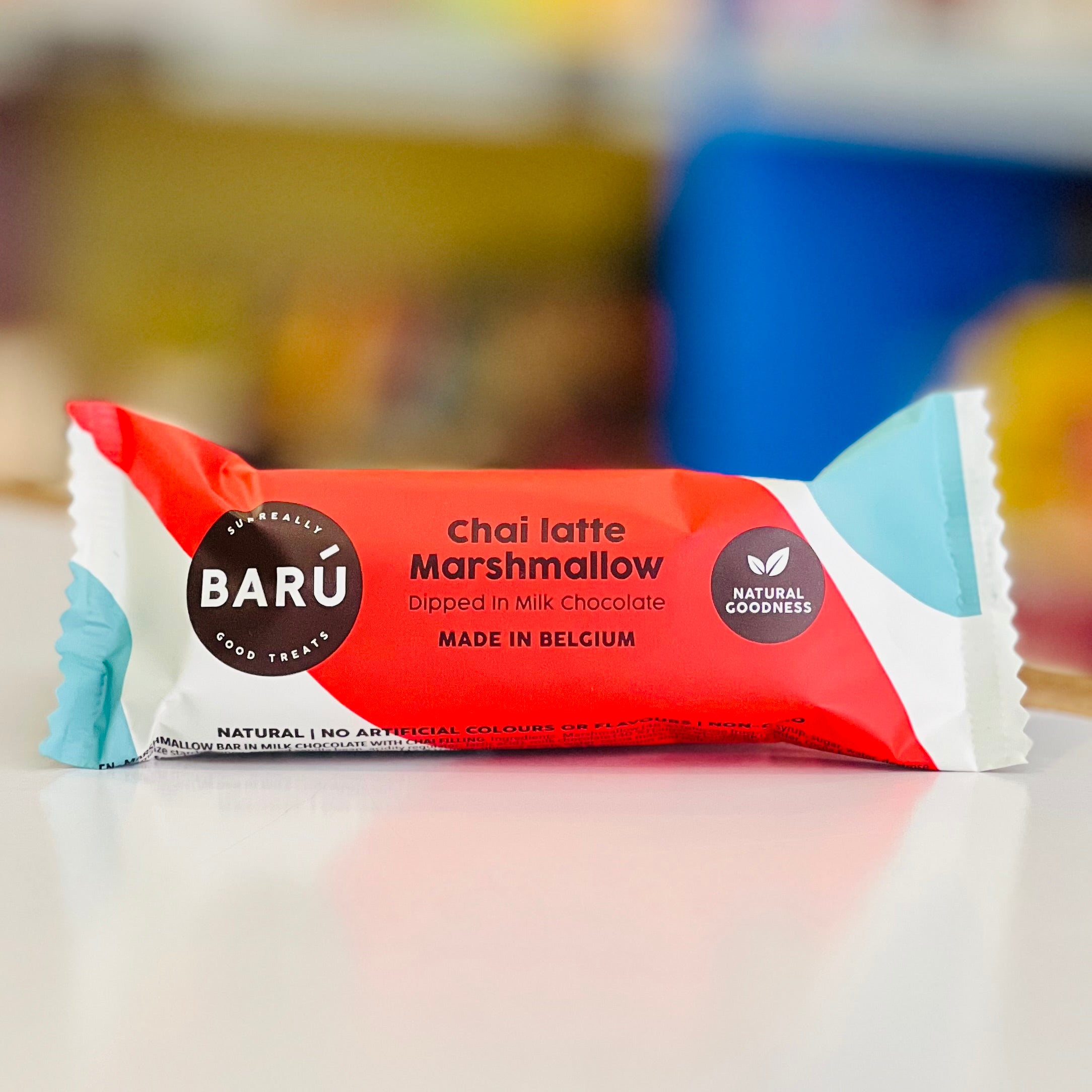 Gourmet vanilla bean marshmallow bar covered in milk chocolate with a chai latte topping. Perfect for that walk in the park.