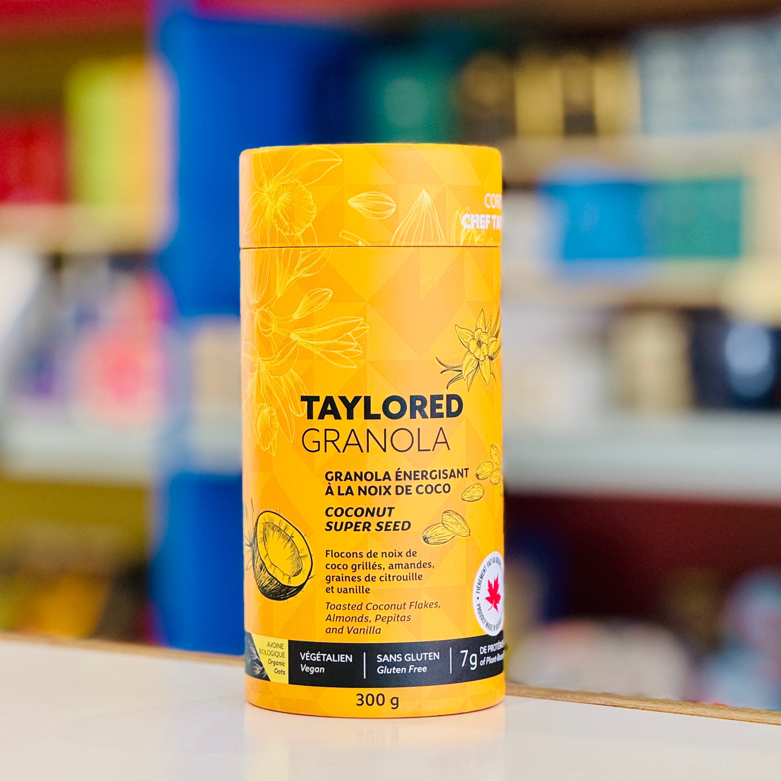 Crafted by Cordon Bleu chef Taylor Pogue, this gluten-free granola is packed with golden toasted coconut flakes, crunchy almonds, pepitas, and a splash of vanilla. And just to sweeten the deal? It’s lightly drizzled with real maple syrup from Quebec! Sweet but not too sweet, this coconut granola is packed with 7g of plant-based protein and 4g of fibre, making it perfect for snacking, sprinkling, or stirring into your favourite yogurt!
