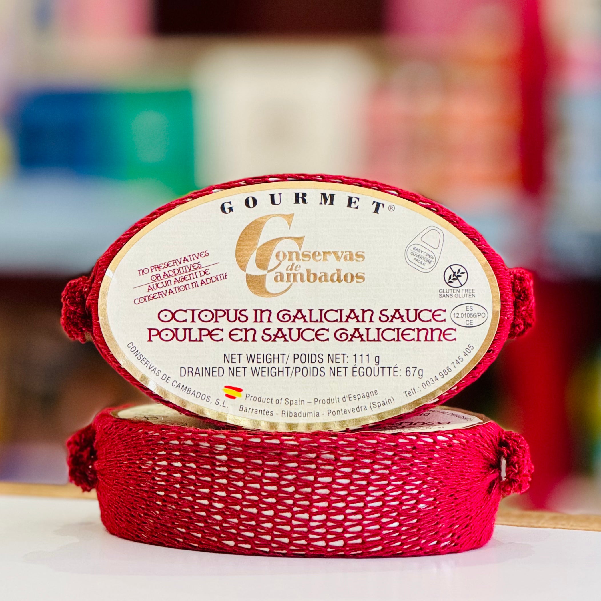 The octopus is one of the star cephalopods of Galicia. It is a typical product in our gastronomy that enjoys a special prestige. The process of preparation is manual and the final packaging is added their renowned seafood sauce, prepared with utmost care and over low heat, turning this product into a delicacy.