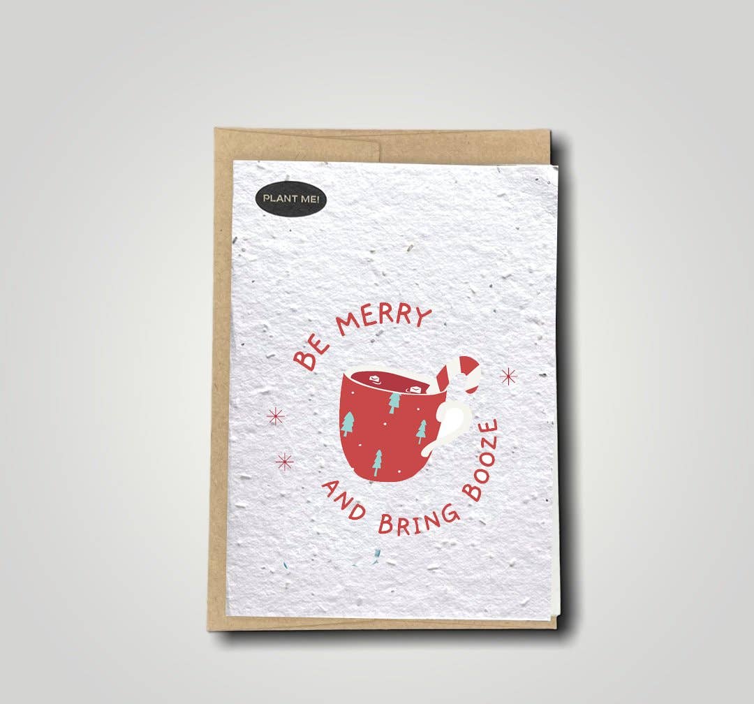 Be Merry & Bring Booze Plantable Greeting Card: Wildflowers
