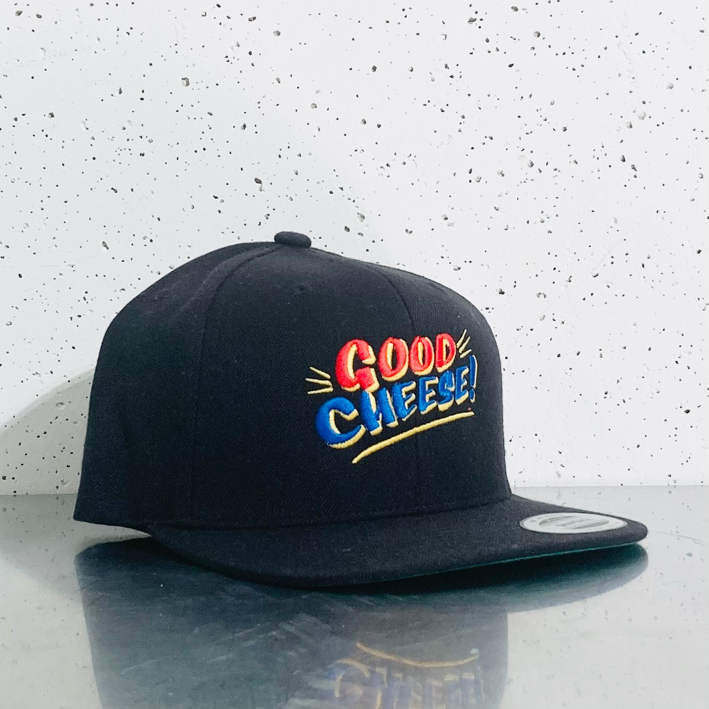 Stylish and useful, this beautifully made classic snap back cap is embroidered with the Good Cheese logo. Show the world you love Good Cheese!
