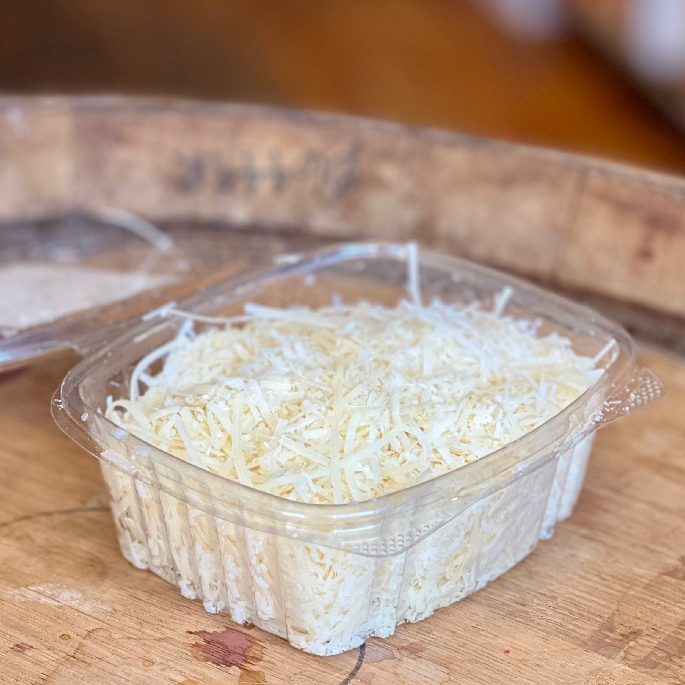 Finely shredded Grana Padano from Italy, made with unpasteurized cow's milk.