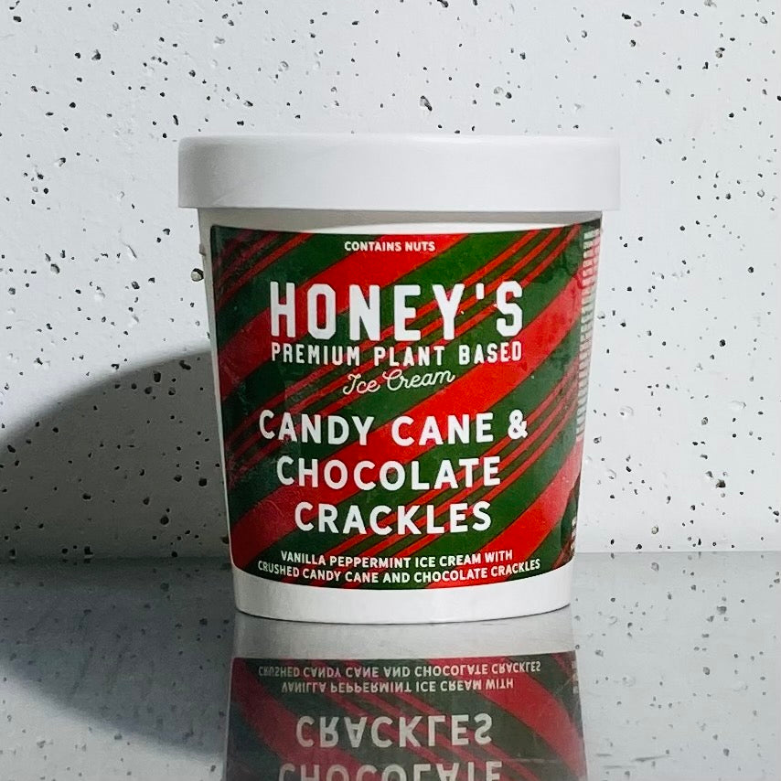 A vanilla mint base with a little candy cane & chocolate crackle crunch! If nostalgia is the 6th taste, this one nails it! One of our finer achievements.