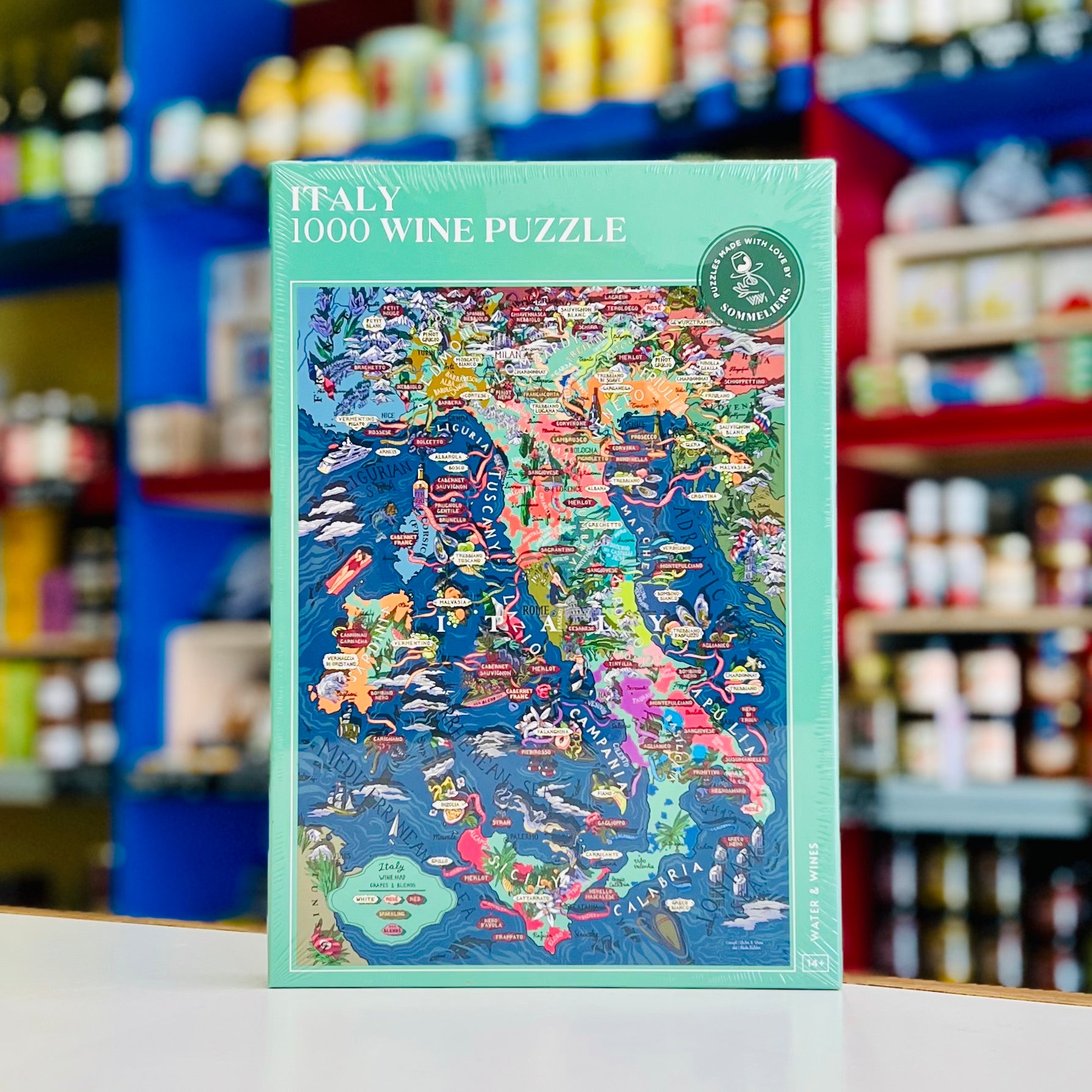 The Italian Wine Puzzle highlights the country’s key wine-producing regions, main grape varieties, and star appellations. The box also features grape profiles, describing aromas, characteristics, and food pairing tips!